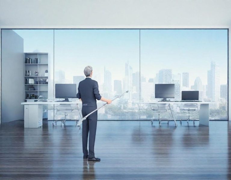 Gründliche Reinigung von Arbeitsflächen, Böden, Sanitäranlagen und Gemeinschaftsbereichen in Büros.